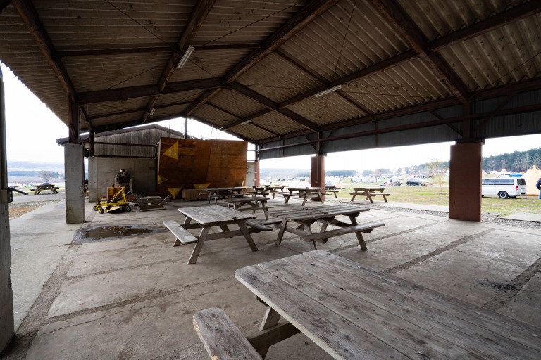 炊事場は屋根付きが良ければトイレと同じエリアにテントを張るのがおすすめです。